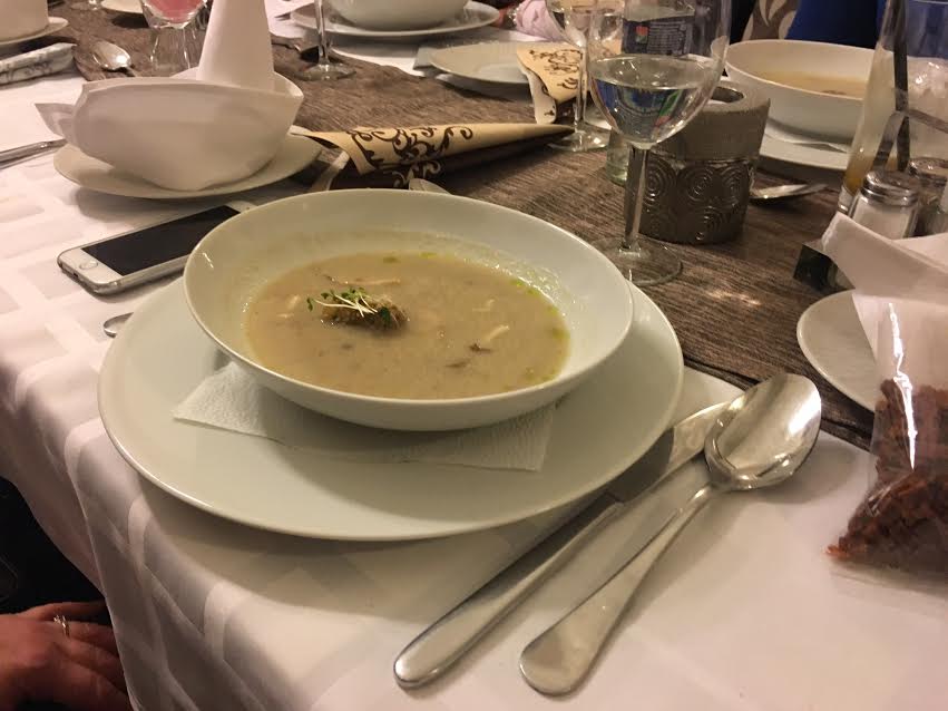 Majd illatos gombából készült leves diós kecskesajttal került a vendégek elé.