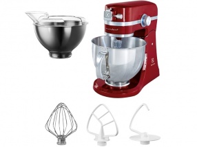 - Tartozékok széles választéka: habverő, keverőszár, dagasztókar, védőfedél és 2 keverőtál.
