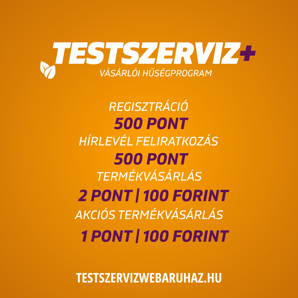 Örömmel jelentjük be, hogy elindult a Testszerviz+ hűségprogram! Mostantól minden egészségtudatos vásárlásod után jutalmat kapsz, amit következő rendelésednél levásárolhatsz. Köszönjük, hogy velünk tartasz az egészséges életmód útján – most mi is megháláljuk!