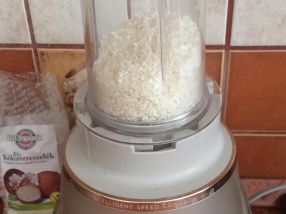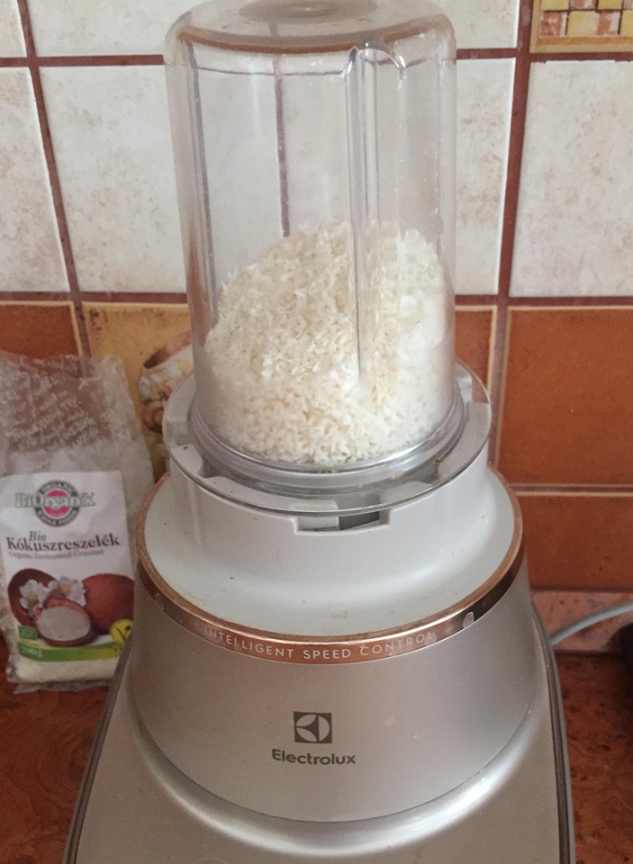 A kókuszreszeléket aprítógépben finomra daráljuk (Electrolux aprító)