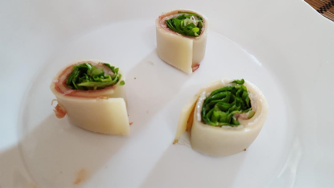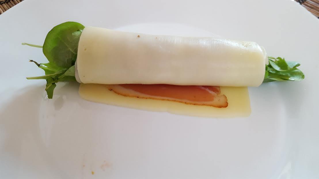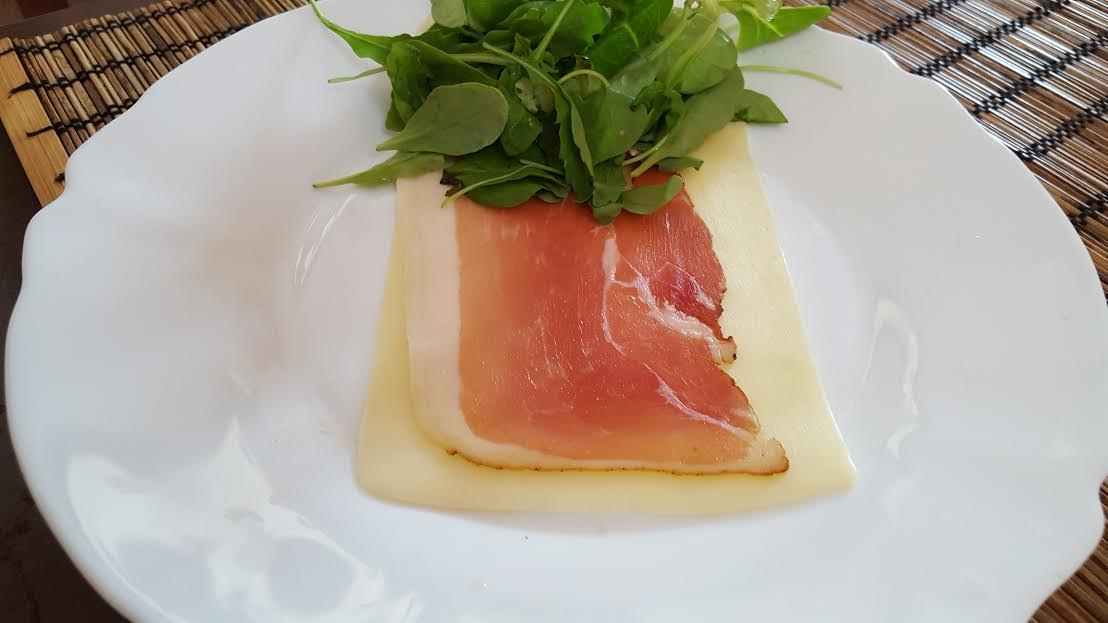 - füstölt lazac vagy házi sonka vékonyan szeletelve