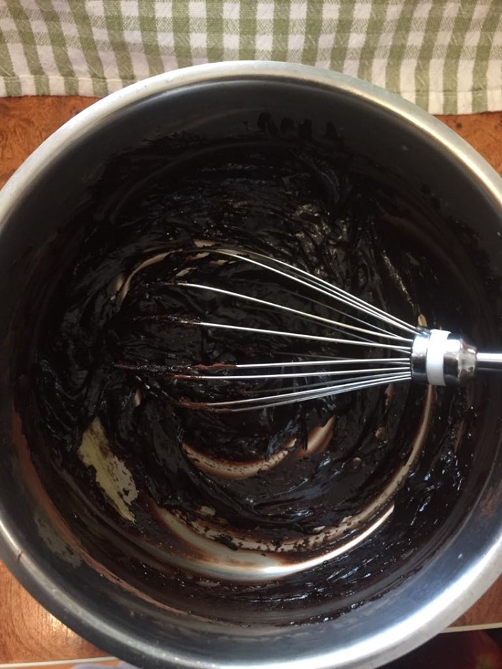 Ezután hozzáadagoljuk a csokis alapot és összekeverjük a két masszát, én ezt már kézzel csináltam.